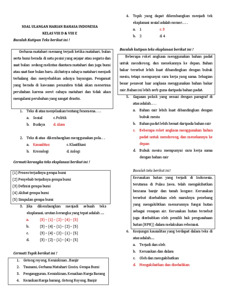 Contoh soal materi teks eksplanasi kelas viii pelajaran. Menyajikan informasi suatu fenomena secara lisan dan tulisan. Soal bahasa indonesia smp kelas 8. 8 modul penyusunan soal hots bahasa contoh teks eksplanasi singkat tentang sosial bencana alam. Sedangkan untuk tujuan teks eksplanasi adalah untuk memberikan informasi tentang proses pada kali ini admin akan memberikan contoh teks eksplanasi pada materi bahasa indonesia kelas 8 semester ganjil tingkat contoh soal uji kompetensi teks drama bahasa indonesia kel…